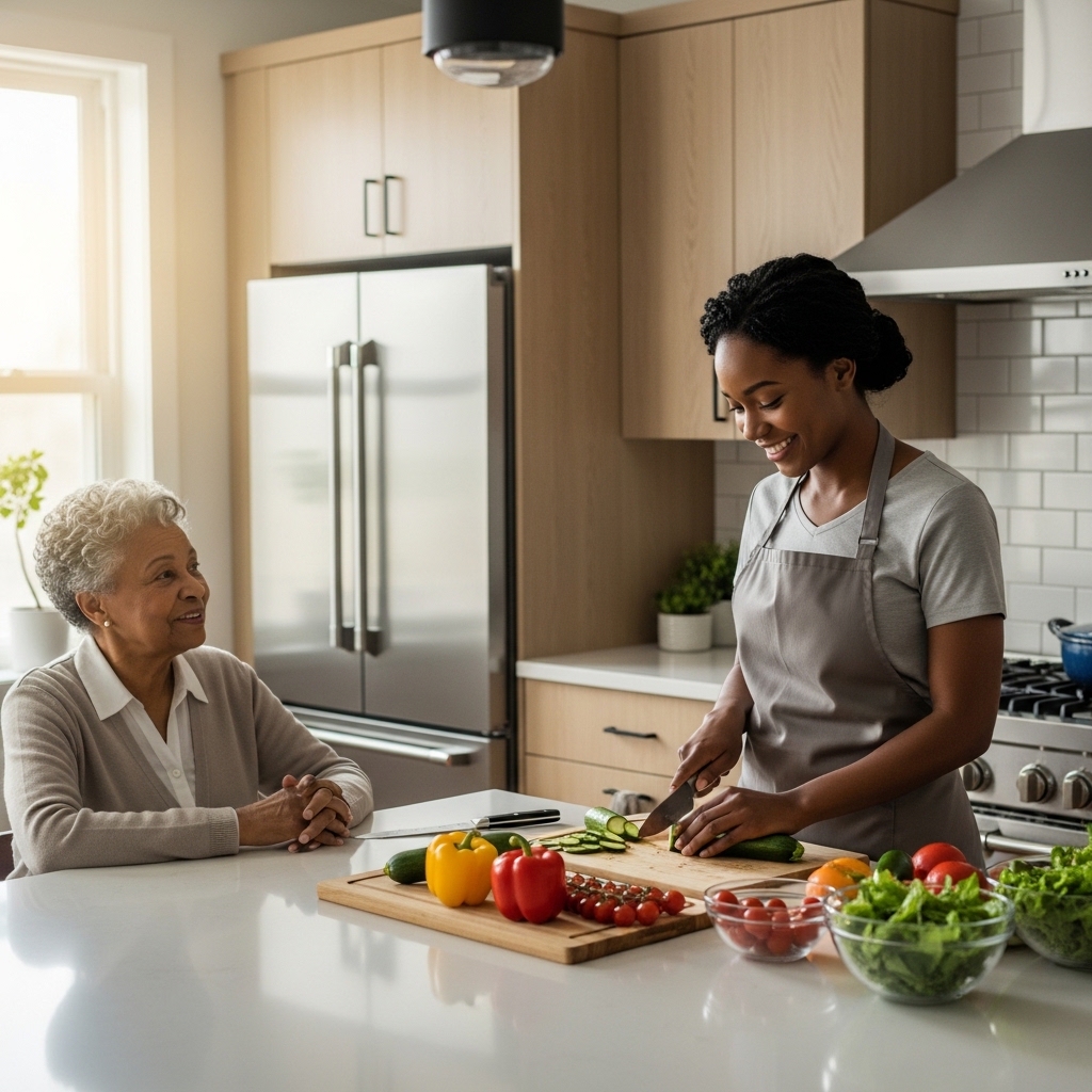 Light housekeeping, laundry, meal preparation, grocery shopping, and running errands to maintain a clean and organized home.